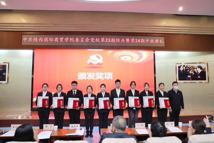 会议宣读了《中共陕西国际商贸学院委员会党校关于准予第23期党课高级培训班结业的决定》。彭虎军为第23期党课高级培训班优秀学员颁发荣誉证书。